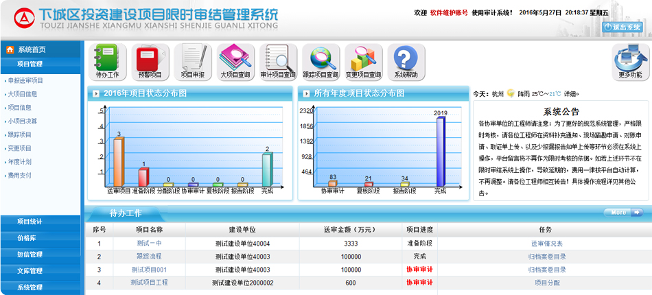 投資建設(shè)項(xiàng)目審計(jì)管理平臺(tái)涵蓋建設(shè)項(xiàng)目的申報(bào)、審計(jì)、審批、交流、考評(píng)、費(fèi)用結(jié)算和統(tǒng)計(jì)等功能,對(duì)全部審計(jì)過(guò)程進(jìn)行限時(shí)審結(jié)與自動(dòng)預(yù)警。隨時(shí)了解項(xiàng)目進(jìn)度(未審、在審、已審項(xiàng)目)、類(lèi)別占比、滯后原因以及審計(jì)問(wèn)題項(xiàng)目等信息。平臺(tái)通過(guò)消息提醒、短信提醒、手機(jī)APP(例如微信消息)提醒達(dá)到對(duì)項(xiàng)目的實(shí)時(shí)監(jiān)控、超時(shí)預(yù)警等效果,用戶(hù)根據(jù)項(xiàng)目進(jìn)度實(shí)現(xiàn)審計(jì)過(guò)程跟蹤,在審計(jì)過(guò)程中可通過(guò)咨詢(xún)成果在線(xiàn)編輯、保存、統(tǒng)計(jì),自動(dòng)生成階段成果各類(lèi)報(bào)表。利用一系列的線(xiàn)上操作與交流進(jìn)一步規(guī)范投資建設(shè)項(xiàng)目審計(jì)的行為,提高審計(jì)工作質(zhì)量及效率,保障審計(jì)工作的時(shí)效性。